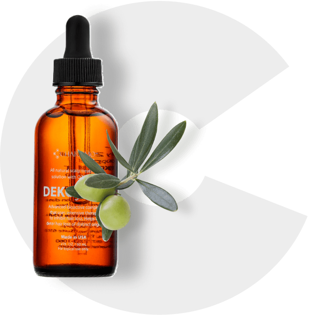 Олеаноловая кислота в составе лосьона Dekohair блокирует действие 5-альфа-редуктазы до 90%, сохраняя энергию клеток для деления и роста.