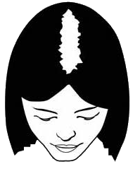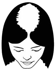Пробор и окружающее его пространство лысеют интенсивнее – становится видна кожа головы, не покрытая волосами. В дальнейшем в теменной зоне скальпа формируются полноценные очаги облысения.