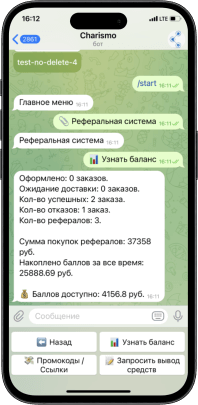Доступ в личный кабинет партнера в удобном чат-боте Telegram;