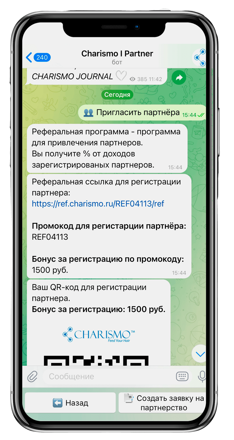 - Рекомендуйте партнерскую программу CHARISMO